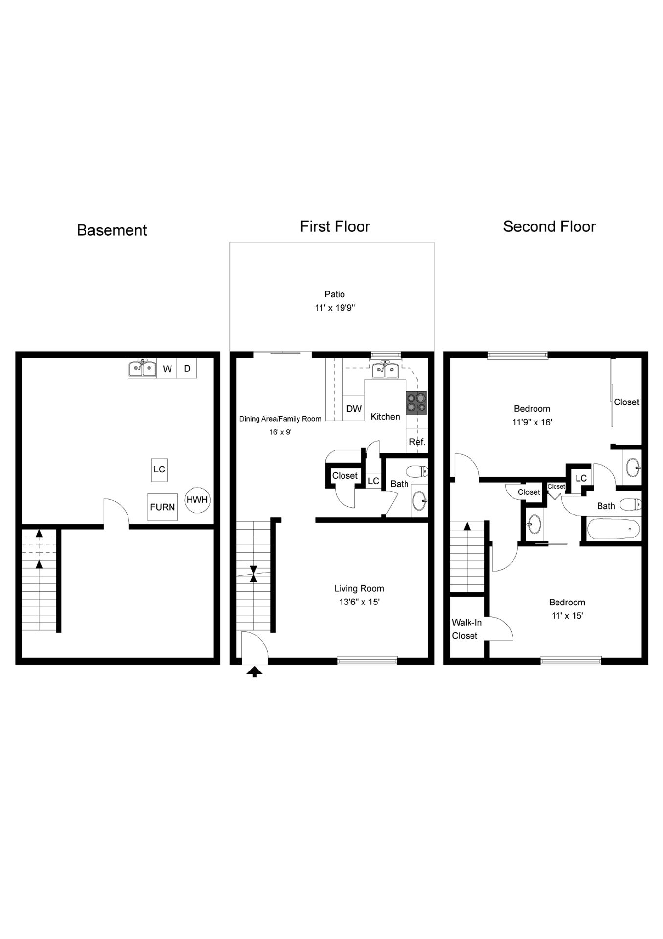 2 Bedroom 2 Bath 3 Level Townhome